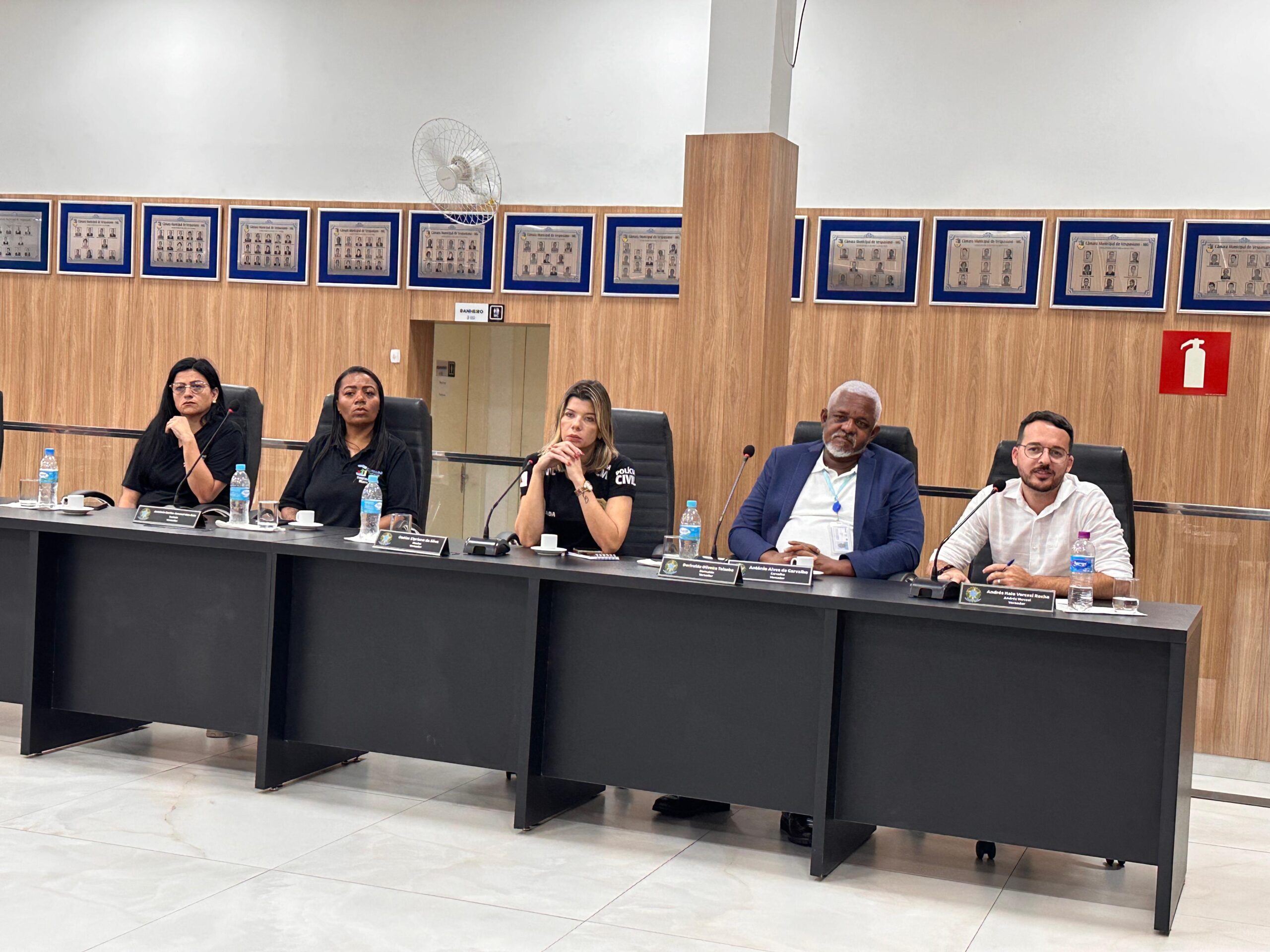 O debate atende a requerimento da vereadora Tia Ju. Na audiência, estiveram presentes os vereadores Filipe Caldeira, presidente da CMV, Andrés Vercesi, Oziel Fernandes, Roberto Duraēs e a autora do requerimento vereadora Tia Ju,sociedade civil e agentes municipais: