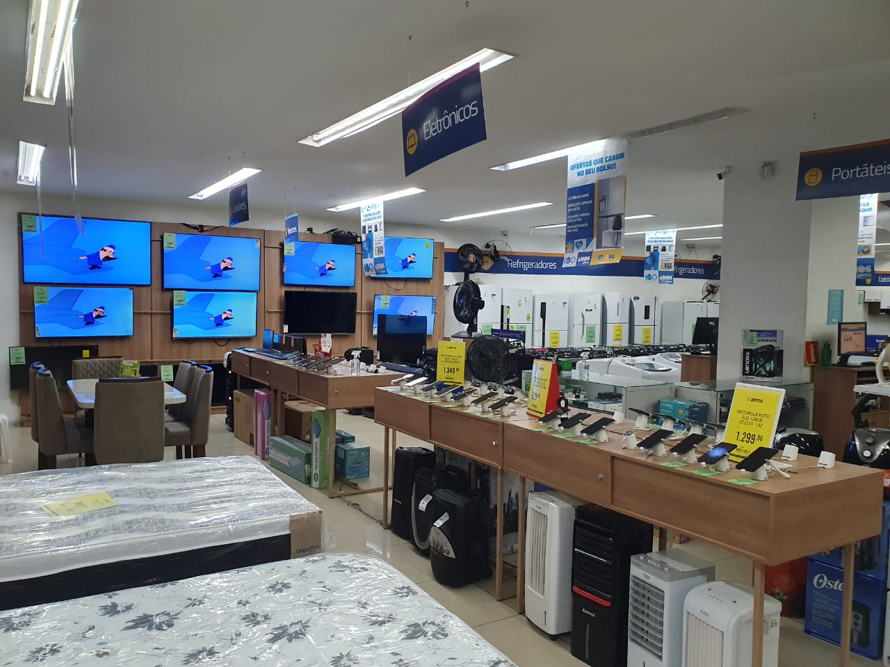 E ainda perfumaria, moda e produtos para bebês, além de serviços como empréstimo pessoal e consignado, consórcio em geral e cartão de crédito próprio da loja.
